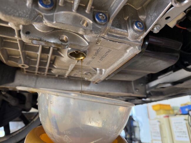 まずはドレンプラグを外してATのフルード抜き取りです。