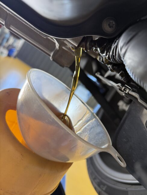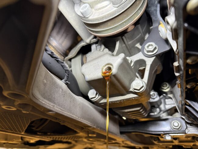 続いてDSGオイルの交換、プラグからオイルの排出です。