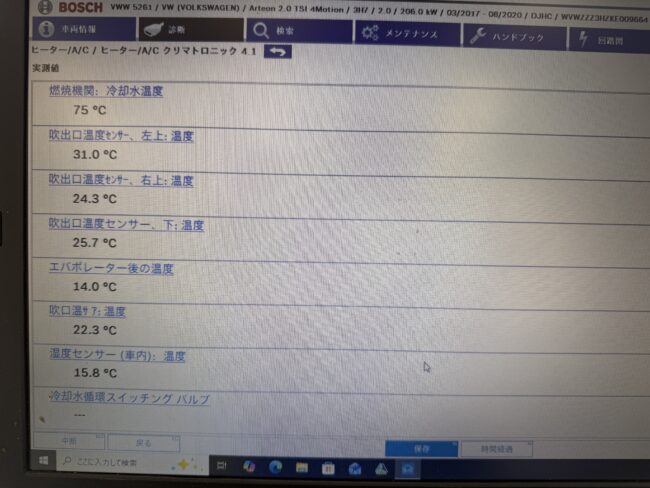 暖房が効かないということで、各種温度を測定。