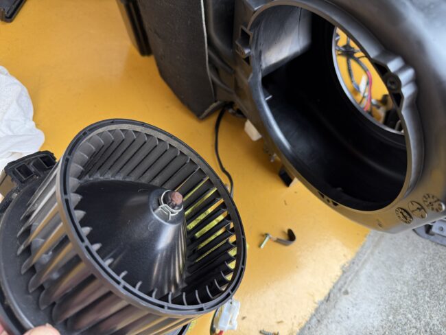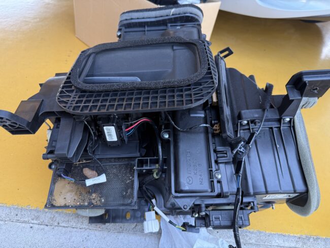 ダッシュボードを取り外すとヒーターコアASSYが見えてきます